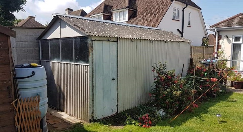 The stability of any of these bonded asbestos garage roof installations is reliant on a firm supporting structure and also a solid base. Sometimes we have to remove structures that have been assembled straight onto the earth; natural ground movement over the years can then disturb the supporting walls and compromise the stability of the bonded asbestos garage roof.